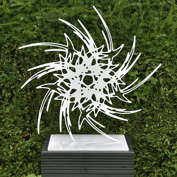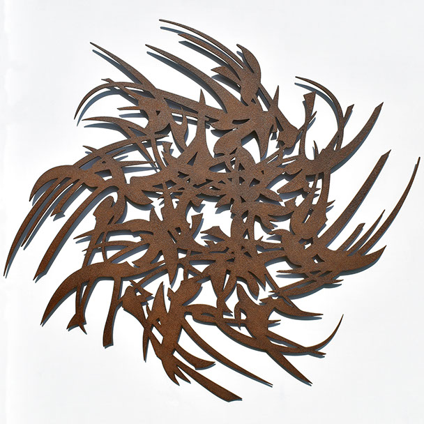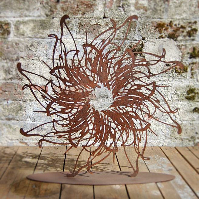 My background in graphic design influences my exploration of form and line. Drawings and photographs are the starting point from which I develop organic, abstract and figurative sculpture. I create intricate drawings from which the final artwork is digitally cut into stainless steel, corten weathering steel, aluminium, copper, brass and plywood, transforming the drawn line into a tangible object.