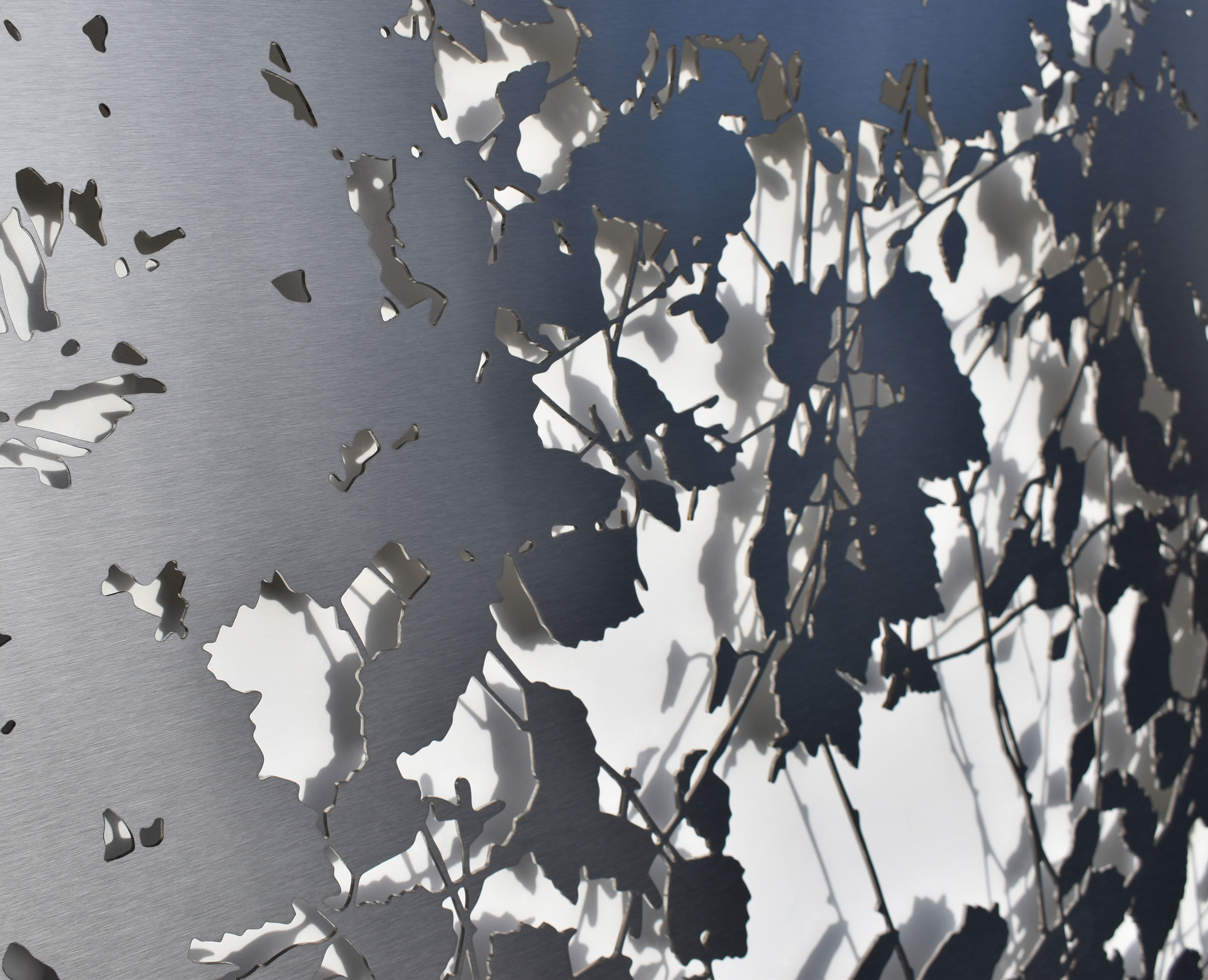 1.5 metre stainless steel 'above us the trees' wall sculpture