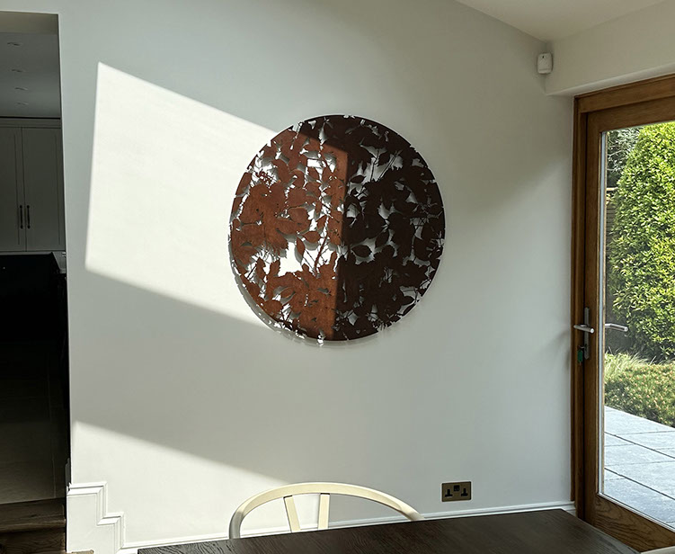 I work to commission, for public, private and corporate clients and collectors, creating free standing and wall sculptures for interior and exterior spaces. I offer a bespoke service to art consultants, interior designers, architects and garden designers. If you have a digital photo I can produce a visual to scale so you can see exactly how it will look on your wall.